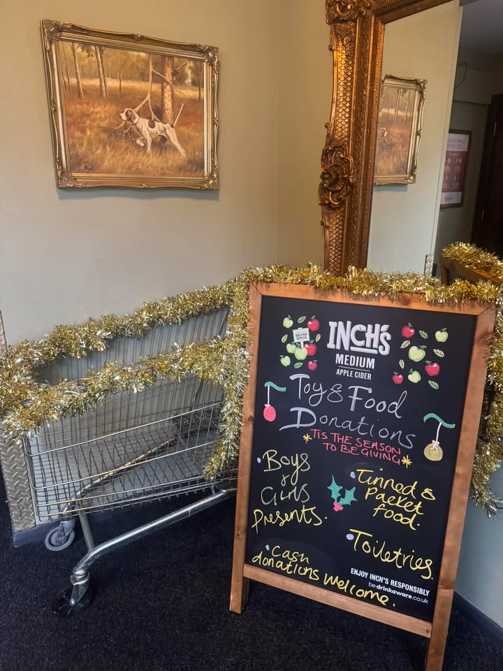 Food and Toy Donations We need your help… We have a (borrowed) Trolly to collect food and toy donations for those in need this Christmas. We need the following.. Toiletries Kids toys (old or new) Tinned or packet food If anyone would like to donate this trolly is in the pub hallway. Thank you D&G Team x