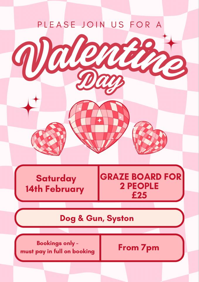 Valentine’s Day… ❤️❤️❤️ Book a table in our function room where you’ll be seated on a candle lit table with a graze board for 2. We have personalised balloons to pre order too from £12 if you wanted to go all out.. we can have these on the table ready ☺️ Bookings will require full payment and a pre orders on balloons too. Come on guys treat your special someone now 😍